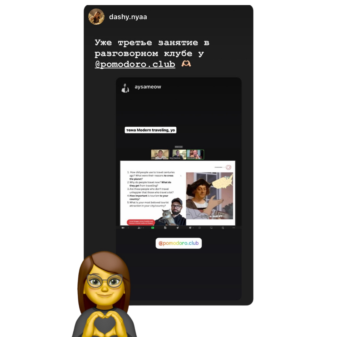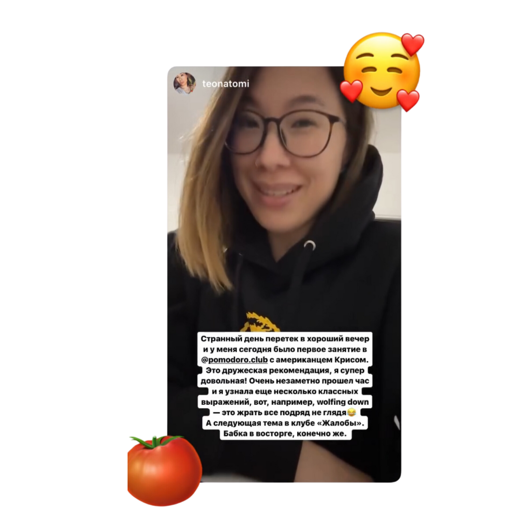 Мы создали разговорные клубы Pomodoro, чтобы у тебя была возможность системной и интересной практики английского в комфортной обстановке и классной компании.